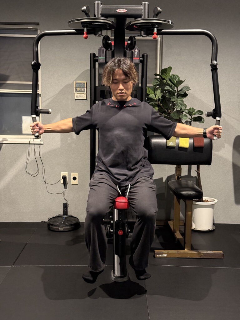 ベンチとかとは手首の角度が違うので同じ位置ではないですが